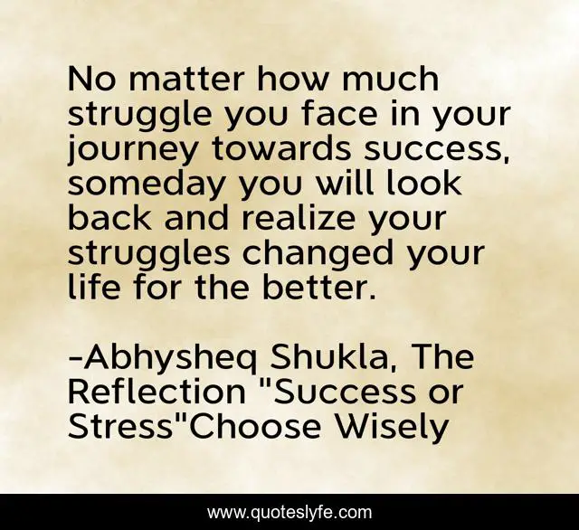 "Abhysheq Shukla, The Reflection "Success or Stress"Choose Wisely Quotes." Quoteslyfe.com, 2025. Sat. 06 Dec. 2025. <https://www.quoteslyfe.com/quote/No-matter-how-much-struggle-you-face-77490>.