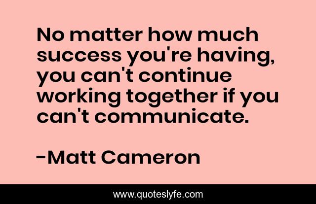 This page presents the quote "No matter how much success you're having, you can't continue working together if you can't communicate.". Author of this quote is Matt Cameron. This quote is about working together, together,.