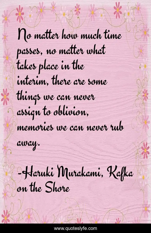 "Haruki Murakami, Kafka on the Shore Quotes." Quoteslyfe.com, 2025. Sun. 07 Dec. 2025. <https://www.quoteslyfe.com/quote/No-matter-how-much-time-passes-no-164310>.