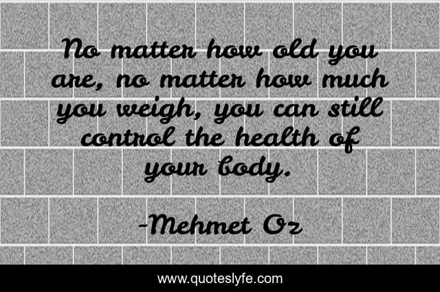 This page presents the quote "No matter how old you are, no matter how much you weigh, you can still control the health of your body.". Author of this quote is Mehmet Oz. This quote is about control, body,.