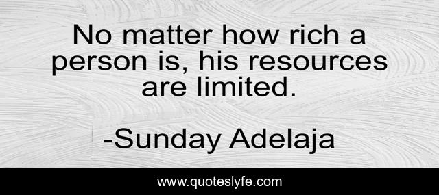 This page presents the quote "No matter how rich a person is, his resources are limited.". Author of this quote is Sunday Adelaja. .