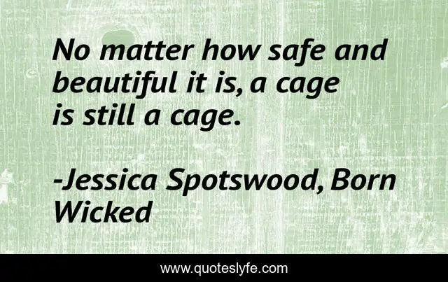 This page presents the quote "No matter how safe and beautiful it is, a cage is still a cage.". Author of this quote is Jessica Spotswood, Born Wicked. This quote is about enthusiasm, inspirational,.