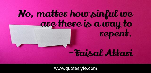 This page presents the quote "No, matter how sinful we are there is a way to repent.". Author of this quote is Faisal Attari. This quote is about science-and-religion, love, children, affection, islam,.