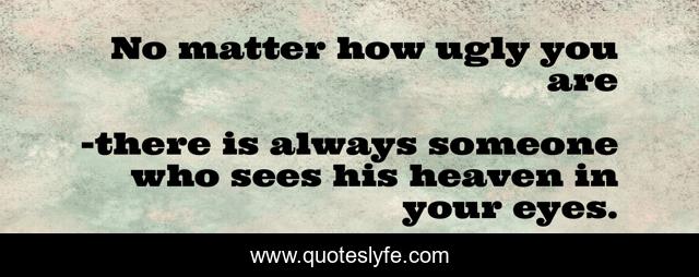"there is always someone who sees his heaven in your eyes. Quotes." Quoteslyfe.com, 2025. Mon. 08 Dec. 2025. <https://www.quoteslyfe.com/quote/No-matter-how-ugly-you-are-183672>.