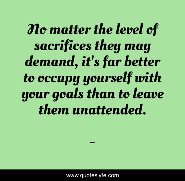 This page presents the quote "No matter the level of sacrifices they may demand, it's far better to occupy yourself with your goals than to leave them unattended.". Author of this quote is . This quote is about edmond-mbiaka, occupy-yourself, sacrifice, your-goals-in-life, level-of-sacrifices,.