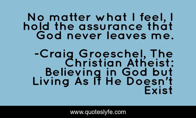 This page presents the quote "No matter what I feel, I hold the assurance that God never leaves me.". Author of this quote is Craig Groeschel, The Christian Atheist: Believing in God but Living As If He Doesn't Exist. This quote is about me, no, feel, god, leaves, matter, assurance,.