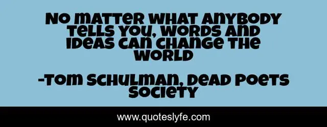 "Tom Schulman, Dead Poets Society Quotes." Quoteslyfe.com, 2025. Sat. 06 Dec. 2025. <https://www.quoteslyfe.com/quote/No-matter-what-anybody-tells-you-words-112503>.