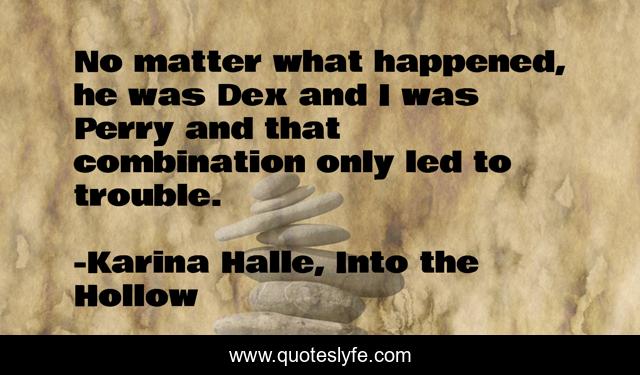 "Karina Halle, Into the Hollow Quotes." Quoteslyfe.com, 2025. Mon. 08 Dec. 2025. <https://www.quoteslyfe.com/quote/No-matter-what-happened-he-was-Dex-17810>.