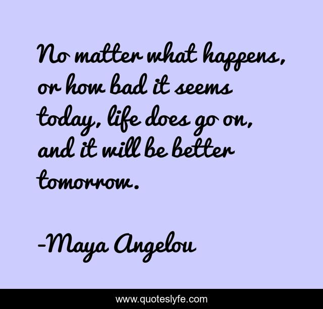 This page presents the quote "No matter what happens, or how bad it seems today, life does go on, and it will be better tomorrow.". Author of this quote is Maya Angelou. This quote is about enthusiasm, inspirational,.