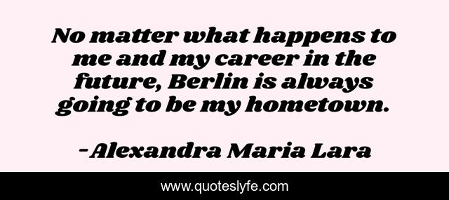This page presents the quote "No matter what happens to me and my career in the future, Berlin is always going to be my hometown.". Author of this quote is Alexandra Maria Lara. This quote is about me, career, hometown,.