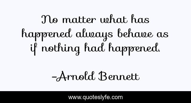 This page presents the quote "No matter what has happened always behave as if nothing had happened.". Author of this quote is Arnold Bennett. .