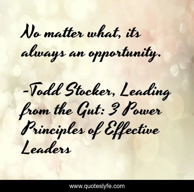 "Todd Stocker, Leading from the Gut: 3 Power Principles of Effective Leaders Quotes." Quoteslyfe.com, 2025. Fri. 05 Dec. 2025. <https://www.quoteslyfe.com/quote/No-matter-what-its-always-an-opportunity-179894>.