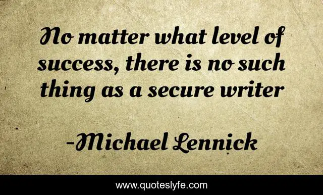 This page presents the quote "No matter what level of success, there is no such thing as a secure writer". Author of this quote is Michael Lennick. .