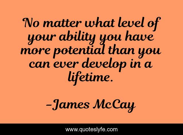 This page presents the quote "No matter what level of your ability you have more potential than you can ever develop in a lifetime.". Author of this quote is James McCay. .