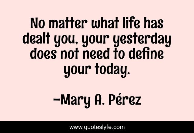 This page presents the quote "No matter what life has dealt you, your yesterday does not need to define your today.". Author of this quote is Mary A. Pérez. .