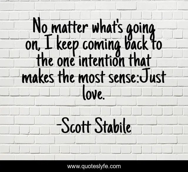 This page presents the quote "No matter what's going on, I keep coming back to the one intention that makes the most sense:Just love.". Author of this quote is Scott Stabile. This quote is about life, love, positive-thinking, positive-thoughts, affection, inspiration,.