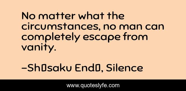 This page presents the quote "No matter what the circumstances, no man can completely escape from vanity.". Author of this quote is Shūsaku Endō, Silence. .