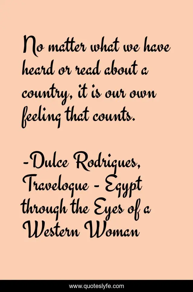 "Dulce Rodrigues, Travelogue - Egypt through the Eyes of a Western Woman Quotes." Quoteslyfe.com, 2025. Sat. 06 Dec. 2025. <https://www.quoteslyfe.com/quote/No-matter-what-we-have-heard-or-137038>.