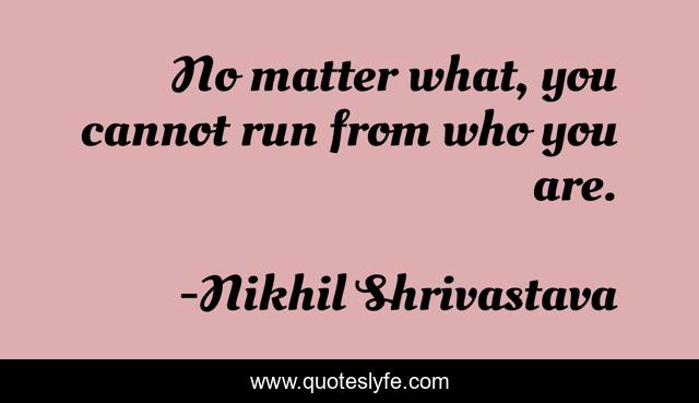 This page presents the quote "No matter what, you cannot run from who you are.". Author of this quote is Nikhil Shrivastava. This quote is about life, passion, goals,.
