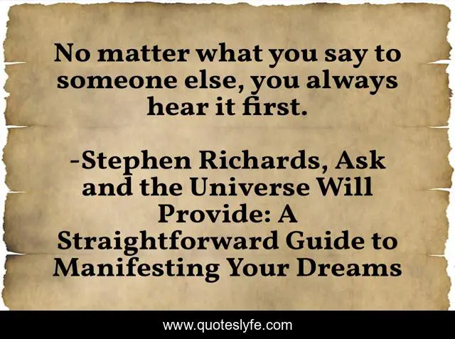 "Stephen Richards, Ask and the Universe Will Provide: A Straightforward Guide to Manifesting Your Dreams Quotes." Quoteslyfe.com, 2025. Tue. 09 Dec. 2025. <https://www.quoteslyfe.com/quote/No-matter-what-you-say-to-someone-44819>.