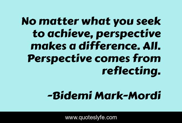 This page presents the quote "No matter what you seek to achieve, perspective makes a difference. All. Perspective comes from reflecting.". Author of this quote is Bidemi Mark-Mordi. This quote is about perspective, achieve, purpose,.