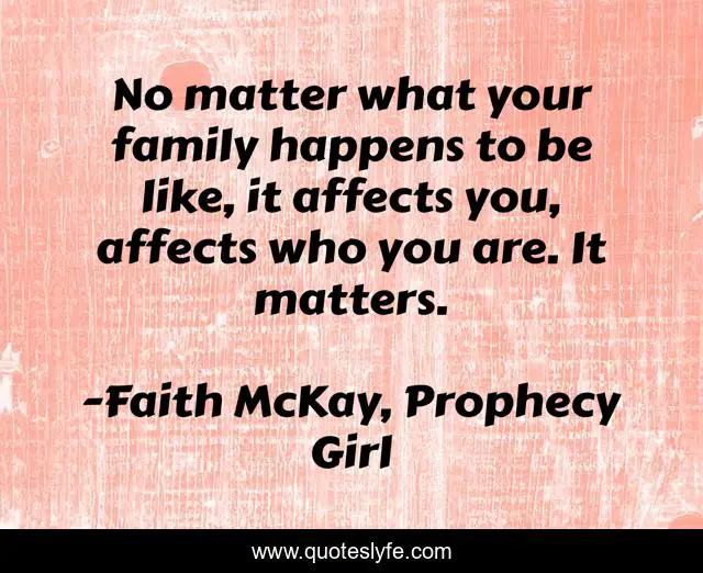 "Faith McKay, Prophecy Girl Quotes." Quoteslyfe.com, 2025. Sat. 06 Dec. 2025. <https://www.quoteslyfe.com/quote/No-matter-what-your-family-happens-to-86369>.