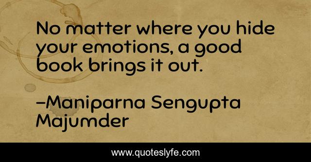 This page presents the quote "No matter where you hide your emotions, a good book brings it out.". Author of this quote is Maniparna Sengupta Majumder. This quote is about book, books-reading,.
