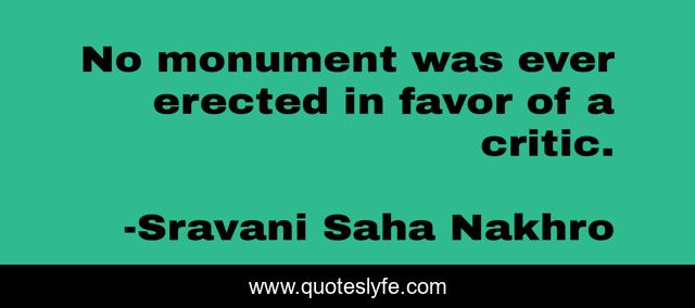 This page presents the quote "No monument was ever erected in favor of a critic.". Author of this quote is Sravani Saha Nakhro. .