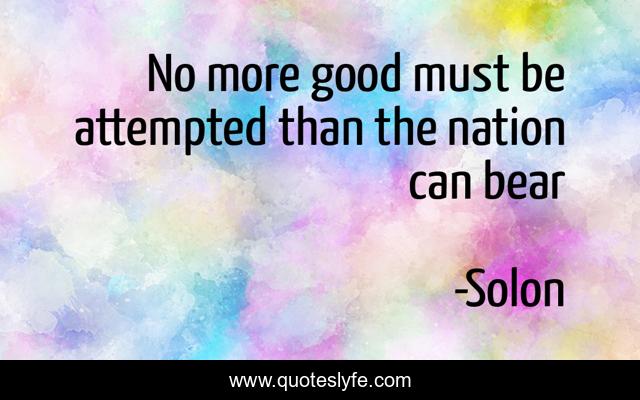 This page presents the quote "No more good must be attempted than the nation can bear". Author of this quote is Solon. This quote is about politics, not-checked,.