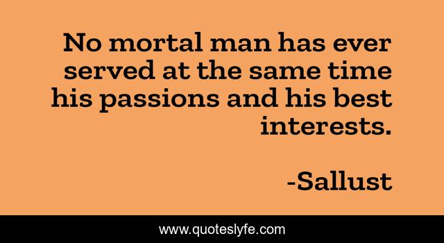 This page presents the quote "No mortal man has ever served at the same time his passions and his best interests.". Author of this quote is Sallust. .