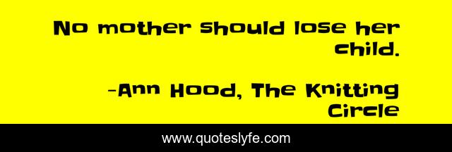 "Ann Hood, The Knitting Circle Quotes." Quoteslyfe.com, 2025. Sun. 07 Dec. 2025. <https://www.quoteslyfe.com/quote/No-mother-should-lose-her-child-21285>.