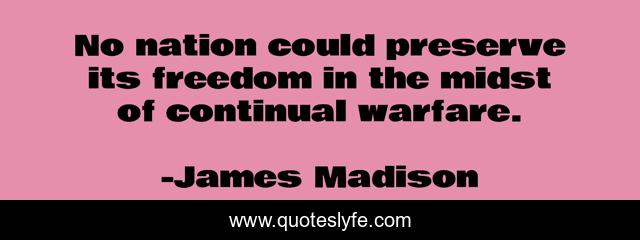 This page presents the quote "No nation could preserve its freedom in the midst of continual warfare.". Author of this quote is James Madison. .