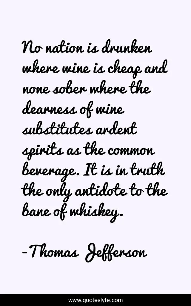 "Thomas Jefferson Quotes." Quoteslyfe.com, 2025. Mon. 08 Dec. 2025. <https://www.quoteslyfe.com/quote/No-nation-is-drunken-where-wine-is-278696>.