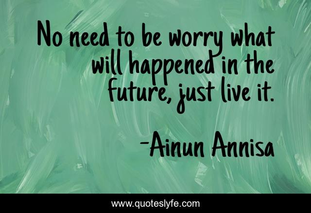 This page presents the quote "No need to be worry what will happened in the future, just live it.". Author of this quote is Ainun Annisa. This quote is about life, future, live,.