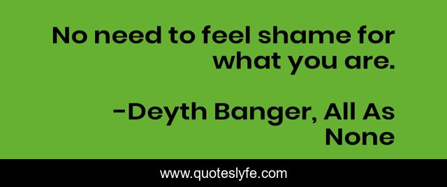 This page presents the quote "No need to feel shame for what you are.". Author of this quote is Deyth Banger, All As None. This quote is about feel, shame,.