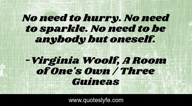 "Virginia Woolf, A Room of One's Own / Three Guineas Quotes." Quoteslyfe.com, 2025. Mon. 08 Dec. 2025. <https://www.quoteslyfe.com/quote/No-need-to-hurry-No-need-to-221131>.