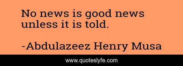 This page presents the quote "No news is good news unless it is told.". Author of this quote is Abdulazeez Henry Musa. .