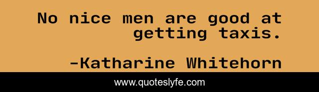 This page presents the quote "No nice men are good at getting taxis.". Author of this quote is Katharine Whitehorn. This quote is about good, nice, getting,.