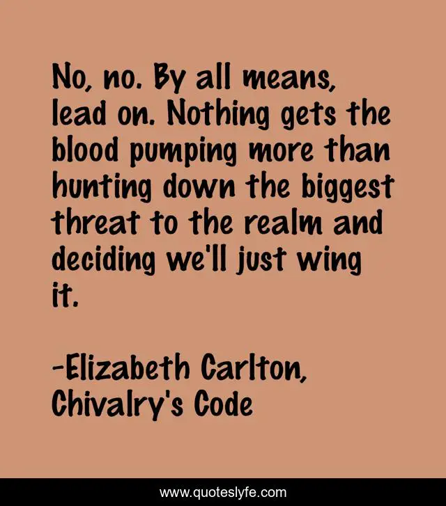 "Elizabeth Carlton, Chivalry's Code Quotes." Quoteslyfe.com, 2025. Fri. 05 Dec. 2025. <https://www.quoteslyfe.com/quote/No-no-By-all-means-lead-on-210861>.