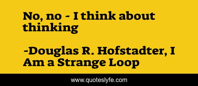 This page presents the quote "No, no - I think about thinking". Author of this quote is Douglas R. Hofstadter, I Am a Strange Loop. This quote is about thinking, strange-loop,.