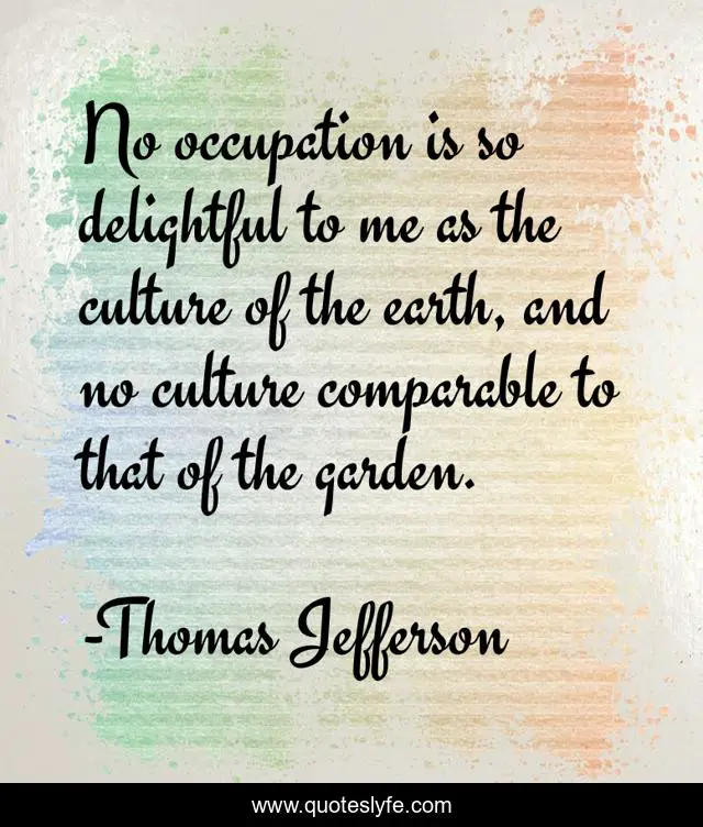 This page presents the quote "No occupation is so delightful to me as the culture of the earth, and no culture comparable to that of the garden.". Author of this quote is Thomas Jefferson. This quote is about me, culture, garden,.