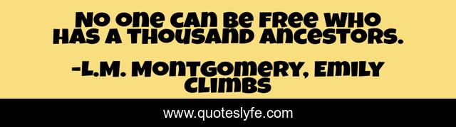 This page presents the quote "No one can be free who has a thousand ancestors.". Author of this quote is L.M. Montgomery, Emily Climbs. This quote is about ancestors, free,.