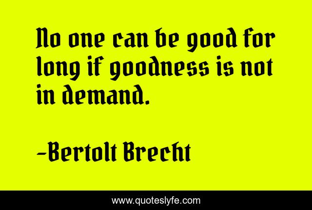 This page presents the quote "No one can be good for long if goodness is not in demand.". Author of this quote is Bertolt Brecht. This quote is about goodness, long, demand,.