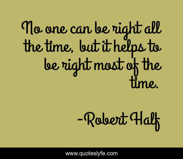 This page presents the quote "No one can be right all the time, but it helps to be right most of the time.". Author of this quote is Robert Half. .