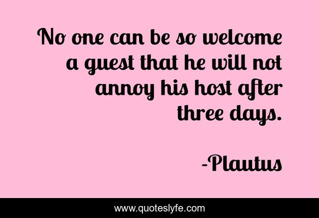 This page presents the quote "No one can be so welcome a guest that he will not annoy his host after three days.". Author of this quote is Plautus. .