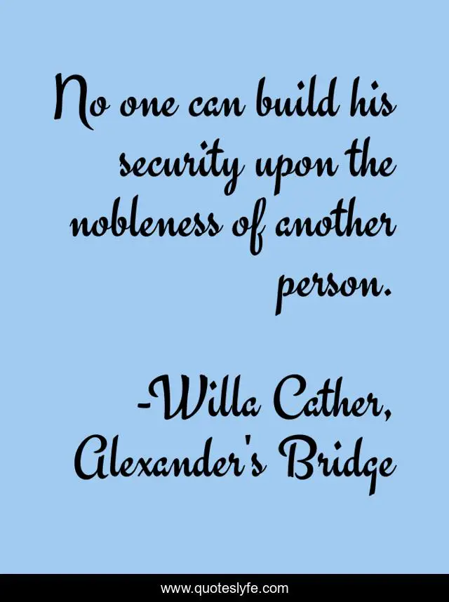 "Willa Cather, Alexander's Bridge Quotes." Quoteslyfe.com, 2025. Sun. 07 Dec. 2025. <https://www.quoteslyfe.com/quote/No-one-can-build-his-security-upon-254771>.