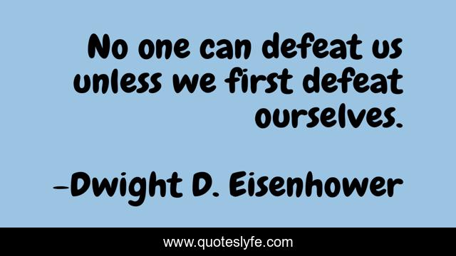 This page presents the quote "No one can defeat us unless we first defeat ourselves.". Author of this quote is Dwight D. Eisenhower. This quote is about positive, confidence,.