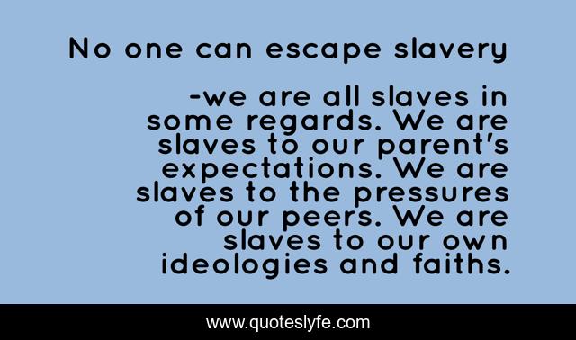 "we are all slaves in some regards. We are slaves to our parent's expectations. We are slaves to the pressures of our peers. We are slaves to our own ideologies and faiths. Quotes." Quoteslyfe.com, 2025. Sat. 06 Dec. 2025. <https://www.quoteslyfe.com/quote/No-one-can-escape-slavery-193537>.