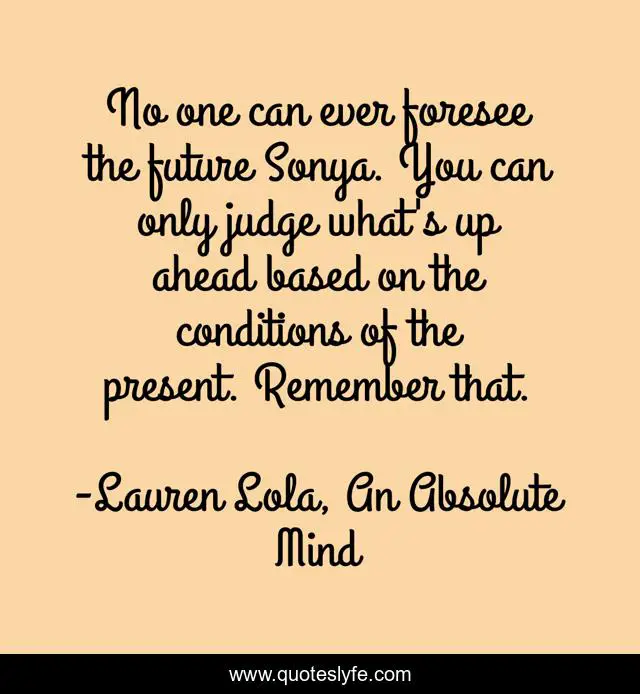 "Lauren Lola, An Absolute Mind Quotes." Quoteslyfe.com, 2025. Sat. 06 Dec. 2025. <https://www.quoteslyfe.com/quote/No-one-can-ever-foresee-the-future-110092>.