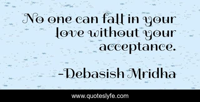 This page presents the quote "No one can fall in your love without your acceptance.". Author of this quote is Debasish Mridha. This quote is about life, love, knowledge, inspirational, intelligence, philosophy, wisdom, quotes, affection,.